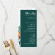 Présentation du menu Mariage "The Drinks", un guide sophistiqué et personnalisé pour votre célébration. L'avant de la carte présente un arrière - plan vert foncé agrémenté d'une sélection de vins, de cocktails, de bières et d'alcools, assurant une expérience agréable à vos invités. L'élégant en-tête "The Drinks" donne le ton, créant une présentation de bon goût. Sous les sélections de boissons, un espace est prévu pour les noms des couples et la date, ajoutant une touche personnalisée à ce détail mariage essentiel. Cette touche de personnalisation permet au menu de servir de garde mémorable pour votre journée spéciale. En retournant vers l'envers, un seul oiseau de paradis grace un arrière - plan blanc serein, créant une esthétique visuelle saisissante et tropicale. Ici, vous avez la liberté d'inclure du texte personnalisable, qu'il s'agisse d'un message spécial, d'une citation ou de détails supplémentaires sur votre histoire d'amour. Le menu Mariage "The Drinks" sert non seulement de guide pratique pour vos invités, mais aussi d'élément délicieux et personnalisé qui incorpore à merveille l'élégance tropicale de la collection Birds of Paradise Bliss dans vos festivités mariages.
