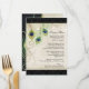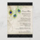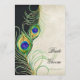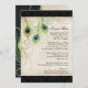 GAMME DE COULEURS : Noir, beige, crème, or, bleu, vert et violet. COLLECTION DE DESIGN : Carte de menu de dîner de réception ou de soirée officielle assortie. Cela fait partie des ensembles d'invitations de mariage comprenant des produits assortis complets. Ces invitations de mariage modernes et contemporaines à plumes de paon sont tendance, élégantes et chic. L'illustration est issue d'une œuvre d'art originale à l'aquarelle peinte à la main par Audrey Jeanne Roberts. Il y a un fond de dentelle texturée, teintée de thé, vieillie, des plumes de paon stylisées et modernes et une bordure latérale de couleur coordonnée. Au verso figure votre texte d'invitation de mariage personnalisé, un ensemble de plumes de paon avec des fioritures enroulées dessinées à la main en beige et un motif damass