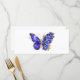 Bijoux, bleu, saphir, papillon aux fleurs pétillantes avec aile décorée de bleu, fleurs précieuses avec feuilles d'or sur arrière - plan blanc.