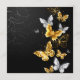 Or, bijoux et papillons blancs sur arrière - plan noir. Papillon doré.