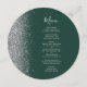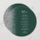 Le bord gauche de cet élégant menu mariage moderne présente une bordure de parties scintillant en faux argent. Le texte personnalisable combine un script d'écriture blanc gris argenté et des polices de cuivre sur un arrière - plan vert émeraude foncé. L'envers présente une parties scintillant verte et argentée assortie.