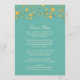 Menu Dîner Correspondant pour dîner officiel, événements d'entreprise et réceptions haut de gamme REMARQUE : Il s'agit d'une invitation à plat, il n'y a pas de parties scintillant ou de feuille métallique utilisée. Les effets sont produits graphiquement. DESIGN COLLECTION : Fête élégante, pétillante, amusante dans les oeuvres? Ce faire-part de mariage confetti pois de taille aléatoire informe vos invités qu'une fête se déroule ! De magnifiques scintillants dorés et luxueux plissent dans des motifs aléatoires aux étoiles scintillantes. Parfait pour un large éventail de styles de cérémonie, de la cravate noire formelle au pays rustique, en plein air sous les lumières scintillantes. Vous pouvez customiser ceci pour n'importe quel type de partie en modifiant les champs de modèle faciles à utiliser. Couleurs : océan piscine aqua bleu turquoise et or