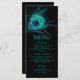 Menu Peacock Feather Chic Parties scintillant Turquoise