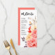 Un somptueux bouquet de magnifiques pivoines et de fleurs de magnolia dans les tons de corail, blush et jaune décoré à droite, avec la typographie de l'en-tête principal Menu dans un ensemble élégant de calligraphie noire. Le reste du texte que vous pouvez facilement personnaliser. Vous pouvez également modifier la couleur et la police du texte modifiable si vous le souhaitez via l'option Cliquer pour Customiser plus ainsi que les couleurs arrière - plans de chaque côté.