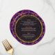 Tribal Batik Style en violet foncé rose foncé et indigo - Menu Mariage rond - qui aurait l'air bien placé sur les assiettes d'invités mariages. Thème : rose, violet, marché de nuit, marocain, arabesque, damassé, moyen-orient, alternative, Batik, Bali vibe, est. . ← . ♥ Menu de réception de mariage double face personnalisable avec un autre côté de la carte avec un design élégant pour les noms de mariée et mariée, les dates de mariage et le monogramme / initiales. Personnalisez avec vos informations spéciales sur l'événement. J'ai ajouté du texte en utilisant le style courbé des deux côtés de ce beau menu rond pour vous faciliter la tâche. Si vous n'en avez pas besoin, supprimez simplement (laissez l'espace vide).
