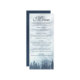 Ce menu mariage est simple, rustique et élégant. Il est doté d'un titre de calligraphie de script sophistiqué avec une montagne boisée toile de fond pins d'épinette bleue entourés de brume ou de brouillard. Le dos est une couleur verte de forêt marbrée profonde. Parfait pour une réception extérieure.