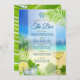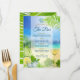 Affichez votre menu open bar de mariage de plage avec ce design lumineux et joyeux avec une plage dorée avec mer turquoise et ciel bleu avec des lumières bokeh, décoré par un verre de vin clair avec des raisins et le verre rafraîchissant de mojito froid glacé avec menthe et chaux sur des feuilles de palmiers verts frais. Parfait pour les mariages sur la plage, les mariages de destination, les mariages tropicaux, les mariages insulaires, les mariages d'été et autres événements liés à la mer. Visitez la collection pour voir l'ensemble de la suite.