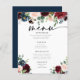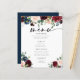 Menu Boho Burgundy et Blush. Cette carte est caractérisée par des roses boho bordeaux et rougis et des fleurs avec deux polices de haute classe modernes qui façonnent les tendances des événements festifs actuels et futurs.