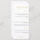 Ce menu mariage moderne minimaliste comporte une belle formulation de script doré, associée à une police sans serif propre pour une sensation de mariage élégante et élégante que vous adorerez. Personnalisez votre monogramme sur le dos pour une touche de luxe supplémentaire.