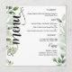 Apportez une touche de charme sophistiqué à votre réception avec ce menu de mariage élégant avec verdure. Conçu en forme ronde avec une écriture fantaisiste et un feuillage aquarelle luxuriant, il s'adapte parfaitement à chaque assiette. Un choix parfait pour les mariages en plein air, bohèmes ou champêtres.