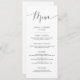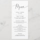 Elégante et minimaliste carte de menu dîner mariage avec texte de script moderne.