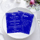 A royal blue background. White text. Decorated with faux silver glitter, sparkles.