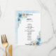 Ce menu inspiré de la chinoiserie, "Un bleu avant moi", présente une jolie brune bleue et des fleurs exotiques. Personnalisez l'invitation à l'aide de vos informations, et si vous voulez modifier le style de texte et la police, sélectionnez le bouton "Cliquez pour customiser plus loin". Mariage