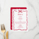 Propre, moderne et sans effort, ce menu Quinceañera présente une typographie rouge audacieuse, un arrière - plan blanc clair et un arc dessiné à la main et une bordure pour un look coquette branché. Il est parfait pour un client d’honneur avant-gardiste qui apprécie la simplicité. Que ce soit pour un dîner élégant ou une fête amusante, ce design minimaliste est facile à personnaliser avec votre nom, date et détails de l'événement. Un moyen chic pour les amis et la famille des invitations de célébrer votre anniversaire marquant.