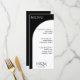 Carte de menu de réception de mariage noir et blanc avec arche géométrique à blocs de couleur. Typographie élégante pour un look luxueux à un prix abordable. Personnalisez la liste des plats et les détails personnels. Idéal pour un thème de mariage minimaliste moderne avec une touche de style.