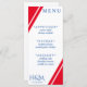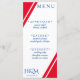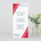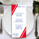 Carte Patriotique rouge blanc et bleu de la réception de mariage avec bande d'angle. Une typographie élégante pour un regard cher à un prix abordable. Customisez la liste des repas et les détails personnels. Idéal pour un thème mariage moderne minimaliste avec une touche de style.