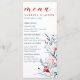 This elegant wedding menu card features a sophisticated botanical aesthetic that balances traditional romance with a clean, modern layout. It is a perfect choice for couples seeking a refined, timeless look for their reception tables. The right side is adorned with a delicate watercolor bouquet of soft pink and white peonies, accented by deep red berries and dusty blue eucalyptus-style leaves.