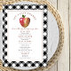 Menu Thanksgiving avec illustration d'une pomme inspirée de l'art populaire. Le buffle noir et blanc plaid la bordure et l'inverse. Tout le texte peut être customisé.