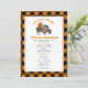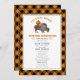 Menu Thanksgiving avec illustration d'un bison de buffle avec citrouille sur le dos. La bordure et l'envers sont des buffles orange et noir plaid.