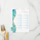 Un autre menu de restaurant élégant par Blue Sands Studio. Ce menu moderne présente un design aquarelle bleu aqua avec des détails de paillettes dorées fausses. Les polices serif classiques sont associées à une calligraphie élégante. Modèle facilement modifiable pour insérer vos sections de menu et vos articles. Si vous avez besoin d'aide ou de conseils, veuillez m'envoyer un message Zazzle.