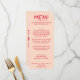 Un menu coloré rétro moderne et chic, rouge mariage et chatoyant. Ce qui présente un design modèle chic d'un arrière - plan de pêche boho brillant typographie de magenta rouge vif et un menu manuscrit en rouge. Parfait et assorti à toute la suite.