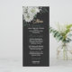 Carte de menu mariage unique avec fleurs blanches romantiques et feuilles verts sur arrière - plan noir. POUR PLUS DE PRODUITS CORRESPONDANTS cliquez sur la collection ci-dessus ou contactez-moi.
