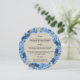 Hydrangeas bleues et menu rond petit modèle à motif toile de jute. Personnalisez le texte comme vous le souhaitez.
