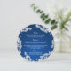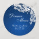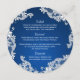 Sapphire bleu et blanc dentelle vintage design petit menu rond. Personnalisez le texte comme préféré.