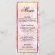 Un très joli menu de réception de mariage à fleurs roses qui peut être facilement changé pour inclure vos propres détails. Le design se compose d'une belle aquarelle motif de roses roses aux bords et au dos. Tous les détails du texte à l'avant sont encadrés dans une boîte avec un cadre doré autour.