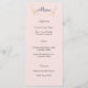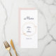Une élégante carte de menu de réception de mariage conçue avec un arrière - plan rose pâle, du texte de la marine et des surbrillances d'or. Le texte de devant comprend : Menu, Les Noms de la Mariée et de la Salle et Date du Mariage. L'envers comprend : Appetizer, Entre et Dessert Selections. Pour personnaliser, insérez simplement vos détails dans notre modèle facile, en remplaçant l'exemple de texte. Assurez-vous de voir l'ensemble de la collection de Mariages Blush Pink, Gold et Navy pour les pièces correspondantes.