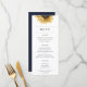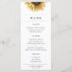 Tournesol rustique aquarelle, carte de menu mariage moderne. Le modèle offre un espace pour les noms, les dates et les trois titres du menu avec des descriptions. Couleur d'emballage illustrée dans la coordination bleu marine foncé, peut être customisé.