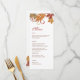 Elégante carte de menu mariage sur le thème des chutes dans un style de panneau de thé. Notre papeterie mariage "Feuille en chute" présente des feuillages d'automne saturés et des tourbillons de défilement. Les couleurs sont orange, cuivre, marron, rouge et or. Carte de réponse - Style 1 : Carte de réponse - Style 2 (comprend les options d'entrée) : com com Carte postale de réponse (adresse au verso) : com com com com com