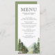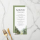 Elégant menu de mariage avec de belles montagnes et des pins avec typographie moderne.