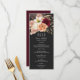 Élever votre réception de mariage avec ce menu rustique à fleurs bordeaux et mariage noir. Doté d'un design boho moody orné de roses rouges et pêche, d'herbe de pampas et d'élégantes calligraphies, ce menu donne un ton romantique à votre dîner. La palette de couleurs riche et les accents floraux en font l'endroit idéal pour les mariages d'automne ou de soirée. Imprimée sur du papier mat de haute qualité, cette carte de menu ajoute une touche de sophistication à votre paysage de table. Customisez facilement le texte pour correspondre aux détails de votre mariage et créez un look cohérent pour votre journée spéciale.