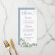 Vos invités adoreront cette carte de menu bleu poussiéreux. Il présente un feuillage vert sauge rustique en aquarelle sur un arrière - plan blanc avec une calligraphie bleu et gris poussiéreux. Faites de cet article unique une partie de votre mariage fixe.