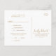 Cette carte postale RSVP est idéale pour un mariage campagnard. Le design simple et moderne d'or et de blanc présente une calligraphie manuscrite unique et fantaisiste, avec un style boho minimaliste contemporain. Personnalisable dans n'importe quelle couleur. Gardez le design minimal et simpliste, en l'état, ou personnalisez-le en ajoutant vos propres graphiques et artwork. Cette carte postale de réponse mariage demande à la clientèle quel repas elle souhaite à la réception.