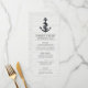 Une ancre de style tableau noir sur un arrière - plan en bois blanc cassé. Un ruban sur l'ancre indique "menu". Tout le texte peut être facilement customisé. Parfait pour un mariage à thème nautique, surtout si vous partez dans le style rustique ou vintage.