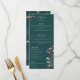 Menu Rustique Turquoise Vert Floral Peacock Bird Mariag