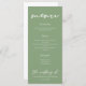 Ce menu simple à sauge vert mariage propose un élégant script blanc pour une cérémonie en plein air dans un cadre naturel. Typographie minimaliste sur vert clair paisible pour un lieu rustique à l'extérieur près d'une forêt d'arbres.
