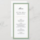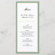 Cette carte de menu mariage classe propose un arrière - plan blanc et propre, agrémenté d'une bordure verte et dorée à la sauge. La couleur verte sauge peut être changée en choisissant personnaliser.