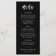 Cette carte de menu mariage offre une touche tendance à la calligraphie moderne. L'écriture élégante ajoute une touche de drame au design noir et blanc, tandis que l'agencement clair assure à vos invités de découvrir facilement le délicieux menu conçu pour votre célébration spéciale.