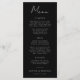 Cette carte de menu mariage présente un script de calligraphie contemporain captivant. Le design noir et blanc crée une première impression audacieuse et inoubliable, tandis que les éléments du menu sont élégamment exposés, afin que vos invités puissent anticiper avec impatience les délices culinaires de votre réception de mariage.