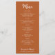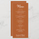 Décontractée typographie tendance mariage carte de menu personnalisée en simple monochromatique rouille orange terracotta et lettrage blanc main. ++++++++++++++++++++++++++++ Vous pouvez modifier les couleurs du texte et de l'arrière - plan après avoir sélectionné CUSTOMISER une autre option. +++++++++++++ Convient pour des réceptions de mariage informelles de style moderne.