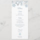 Élégant menu mariage hiver au pays des merveilles avec des flocons de neige bleu argenté. Idéal pour les mariages à thème Noël, les dîners du Nouvel An et d'autres événements saisonniers et de vacances.