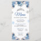 Carte de menu Silver Blue Winter Magique Snowflake Mis Quince