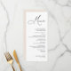 Conçue pour coordonner avec notre collection de mariage de script romantique, cette carte Menu personnalisable, dispose d'un texte de calligraphie de script balayé avec une police serif en noir avec un fond de rougissement avec un monogramme personnalisable. Éléments correspondants disponibles.