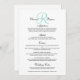 Menu simple de mariage avec l'initiale bleue de monogramme d'oeufs de Robin avec la police de Vivance de l'anglais. Perfectionnez pour des poches de serviette sur les couverts à vos tables de réception de mariage. Pour l'aide avec ajouter votre texte de menu et l'espacer svp entrez en contact avec luxuryweddinginvitations@gmail.com