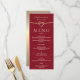 Menu mariage simple, élégant, minimaliste avec coeur de corde or, arrière - plan rouge profond et feuille d'or à l'arrière. Design, moderne, unique - pour mariée avec goût moderne et sophistiqué.