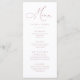 Elégante et moderne, menu plat minimaliste rose poussiéreux. Menu entièrement personnalisable pour votre mariage ou événement.