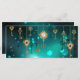 Or, clés antiques avec engrenages et cadrans accrochés sur chaînes dorées sur arrière - plan vert lumineux.